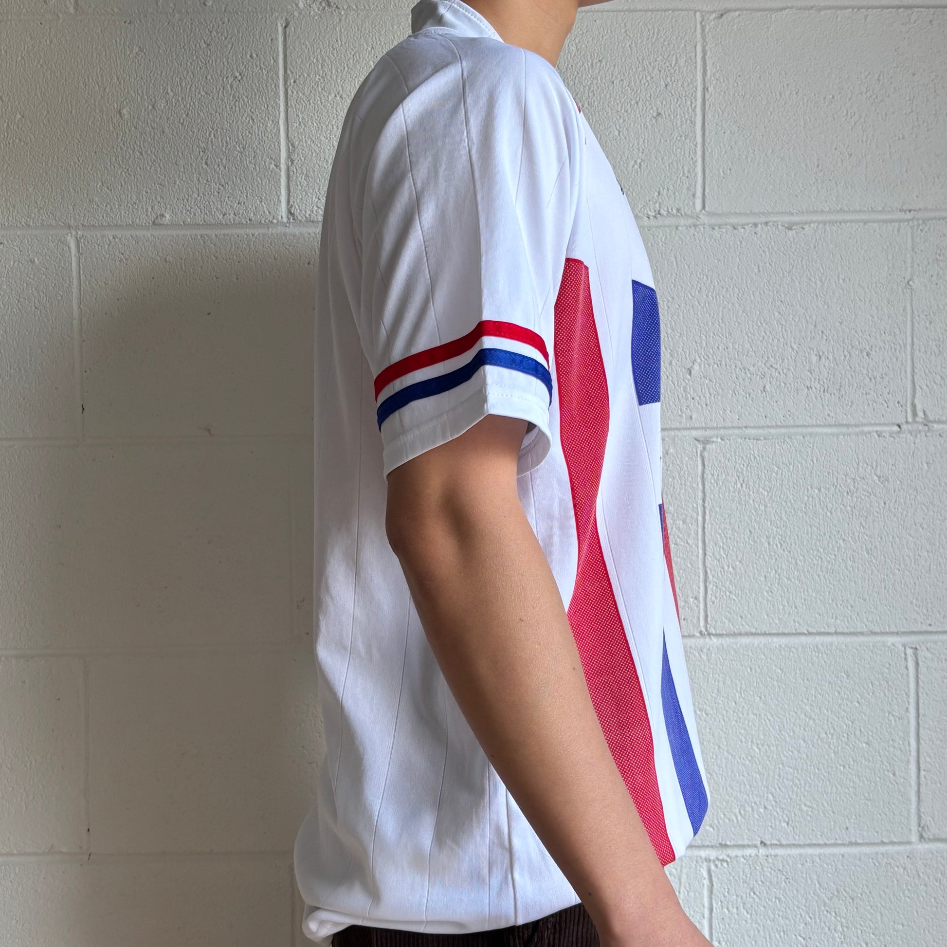 A rare slice of football design history. Made around 2000 by Torres Sport, this Cuba concept shirt was never seen on the international stage, but it carries all the flair of the era. Bold red base, accented with sharp white and blue detailing, echoing the Cuban flag. Minimal branding, classic cut, and a design that feels more like streetwear than kit. A true collector’s piece, something you don’t stumble across twice.