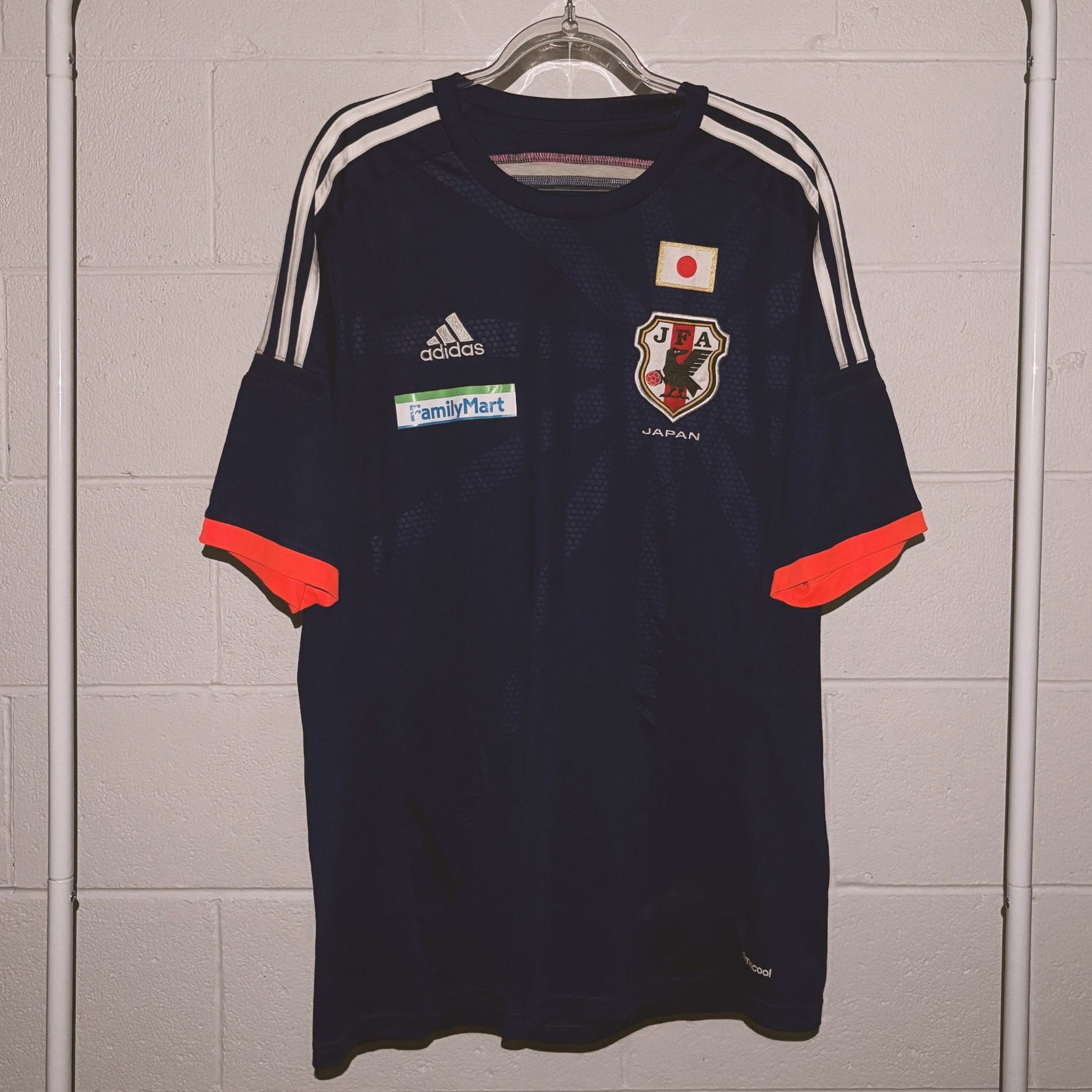 A proper rarity for J-League and Samurai Blue collectors. This Japan 2014 home shirt comes with the special FamilyMart sponsor, a version usually seen in promotional and limited-release runs. Electric blue, bright neon accents, and that bold sash graphic make it one of the standout Japan designs of the 2010s.