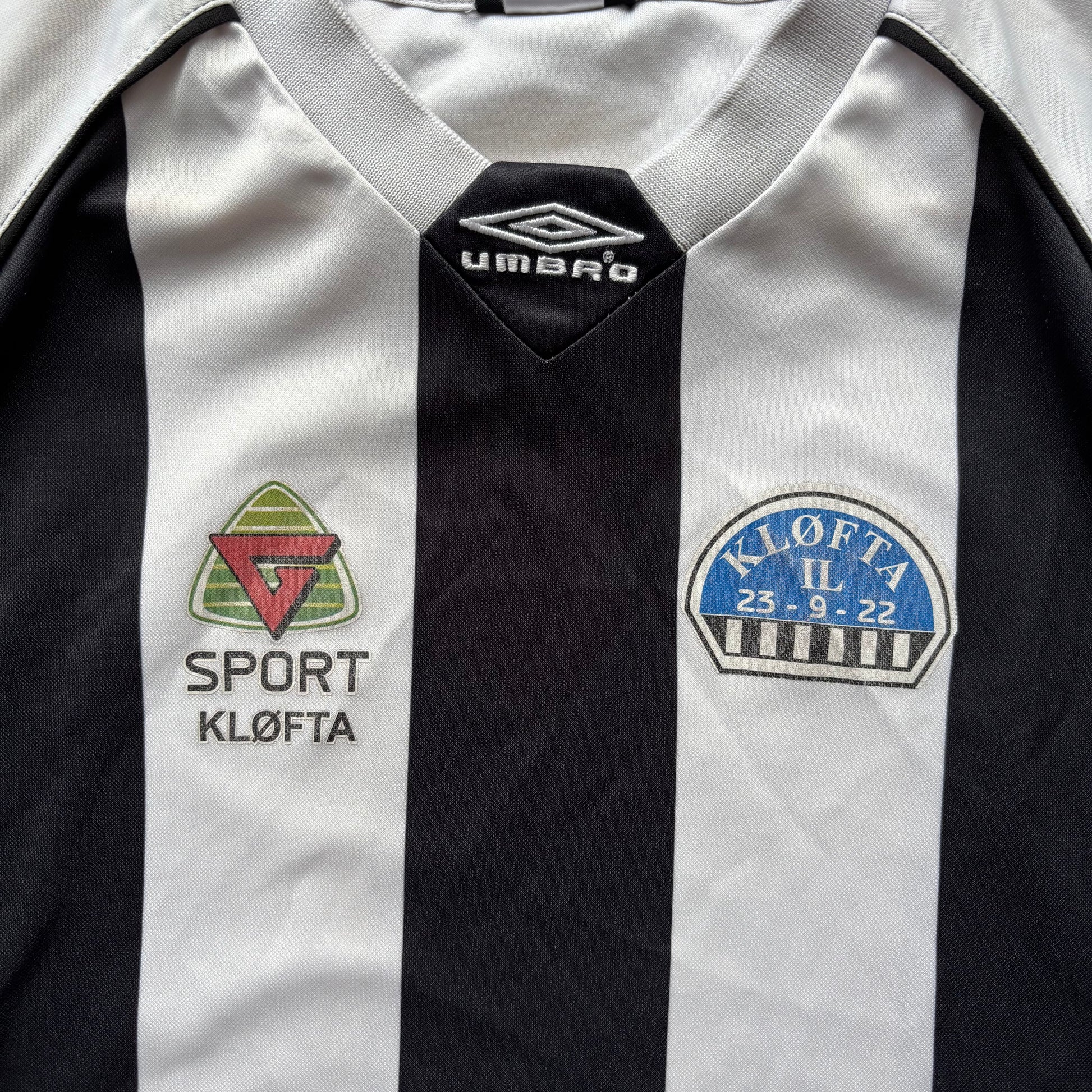 Grassroots football at its finest. This long-sleeve black-and-white striped beauty comes from Klofta IL, a small Norwegian club with a big love for the game. Made by the local manufacturer Sport Klofta, it’s got that classic grassroot feel, heavy polyester, bold stripes, and sponsor logos that scream early-2000s football culture. Rarely seen outside Norway, this is the kind of kit that turns heads for its obscurity as much as its style.