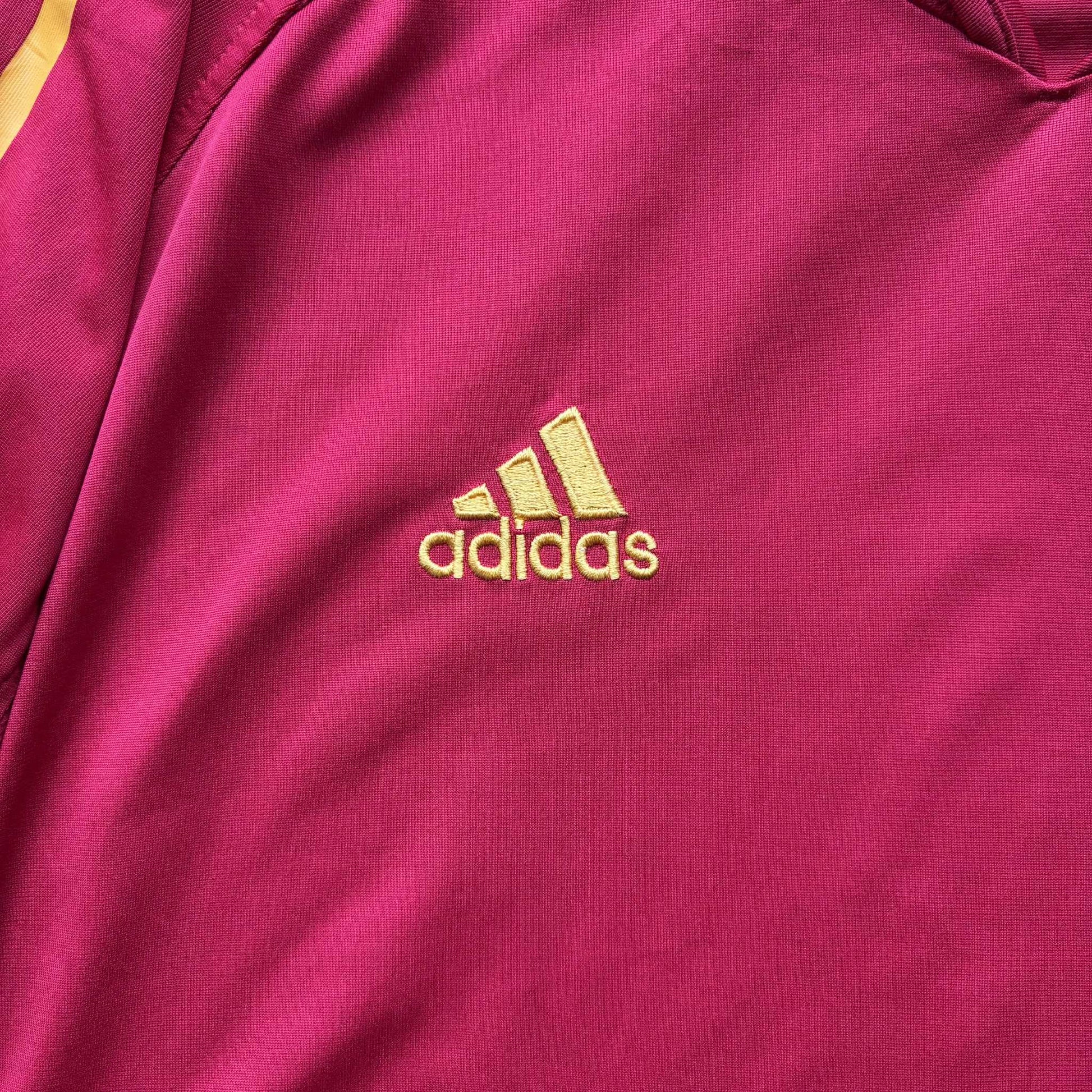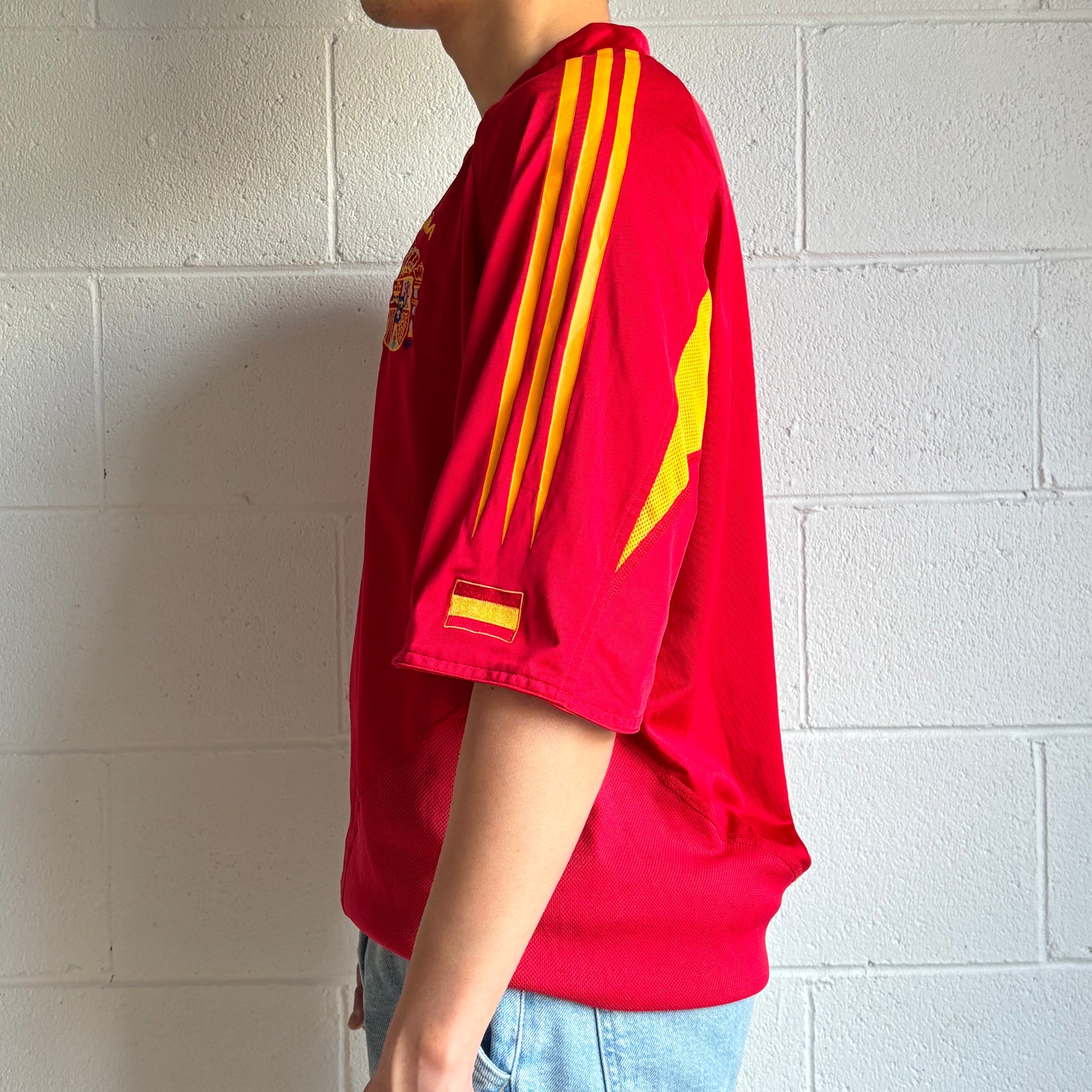 Bright red, bold gold - pure early-2000s vibes. Spain hit the pitch in this kit during Euro 2004, with legends like Raúl and a young Fernando Torres leading the charge. The golden side stripes and subtle pinstripes gave it that sharp, unmistakable Adidas look of the era. Clean, classic, and dripping with nostalgia, this was the shirt of a team on the edge of their golden generation.